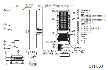 | CTF800 | 最大10条 | 最大800心 | 2(120接続/ユニット) | 8(100心/ユニット) | 800×2150×350 |