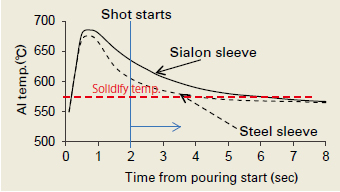 Sialon’s superior heat-retention enables lower molten aluminum casting temperature.