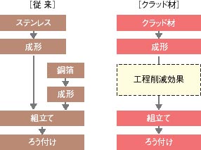各種ステンレスまたは銅系素材を基材とし、その片面または両面にろう材を被覆した新機能材料で、ろう付け工程のVAに貢献します。