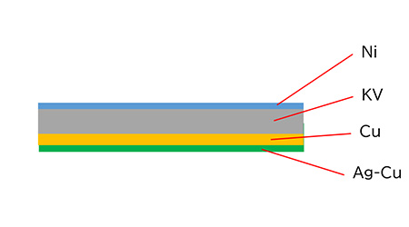 ろう材が圧着されたクラッド材を個片加工したリッドです。シールリングを持たないセラミックパッケージに直接封止することができるため、部品点数の削減と加工工程の簡素化が可能となりトータルコストの低減につながります。
